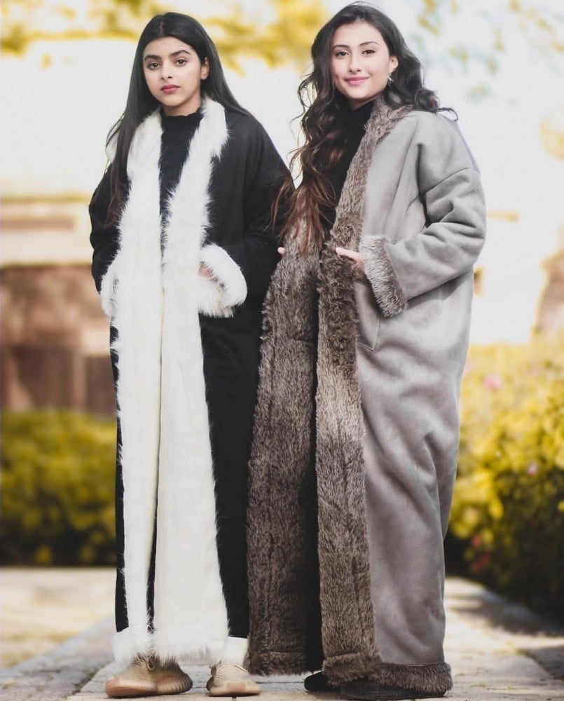 فروة شتوية أنيقة ودافئة مصنوعة من أفخم أنواع الفرو والقماش الصوف